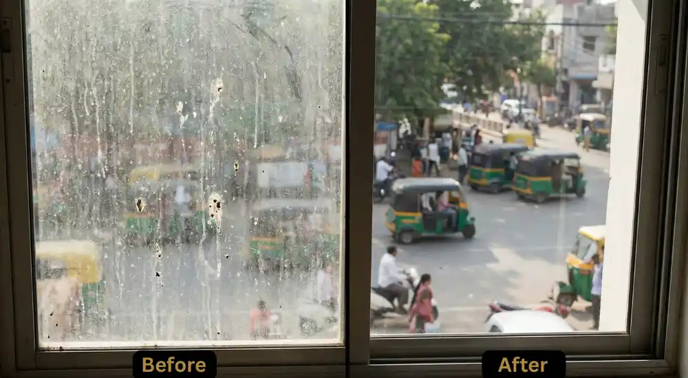 Glass Cleaning Service 10 to 100 SQFT ₹3000 ₹2800 1 Hr 30 Mins Book Now Glass Cleaning Service 100 to 150 SQFT ₹3500 ₹3300 2 Hr 10 Mins Book Now Glass Cleaning Service 150 to 300 SQFT ₹4150 ₹3950 3 Hr 05 Mins Book Now Before & After